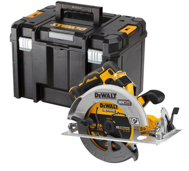 The DeWalt DCS573 18V Circular Saw has a brushless motor for extended run-time, reliability & durability. Take advantage of more power using 18V XR tools with FLEXVOLT ADVANTAGE technology. A unique electronic module with pack identification technology enables the tool to recognise when an XR FLEXVOLT battery is attached and unlock even more power. The DCS573 delivers up to 77% more power when paired with a DCB546 XR FLEXVOLT 6Ah battery versus a DCB184 18V XR 5Ah battery. With a 67mm depth of cut, outstanding dust management features, tool-free depth adjustment and an electronic safety brake, this rugged circular saw can tackle tough applications such as rip and bevel cuts and hard timber cutting. It is compatible with the DeWalt AirLock syste, for easy, secure connection to extraction hose. The bevel angle can be adjusted to 57 degrees. The saw comes supplied in a TSTAK box.