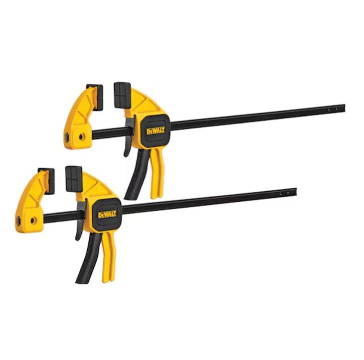 The DeWalt DWHT0-83158 medium trigger clamps deliver quick, one-handed operation and strong clamping pressure for woodworking, cabinetry, and general jobsite applications. With a clamping force of up to 135 kg and durable resin construction, this 2-pack set is ideal for securing materials during cutting, gluing, or assembly tasks.