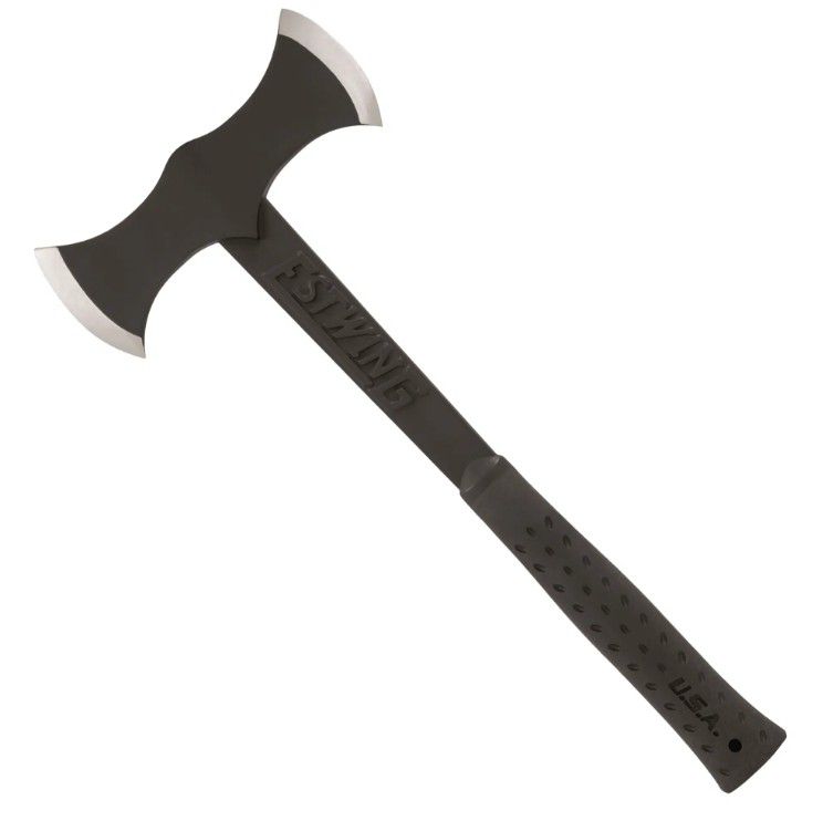 The Estwing Black Eagle Double Bit Axe is designed for serious sportsmen and military professionals. It is perfectly balanced and weighted which makes striking effortless. The two blades are drop forged and tempered, creating the most durable, long lasting outdoor tool on the market. Fitted with a bonded and moulded Shock Reduction Grip which offers the utmost in both comfort and durability, while reducing vibrations caused by impact. The grip is moulded and bonded directly to the tools steel core, meaning it will never slip, even under the harshest conditions. The lightweight design makes it easy to carry.