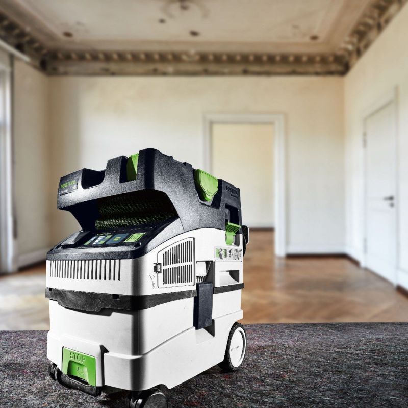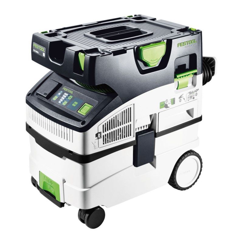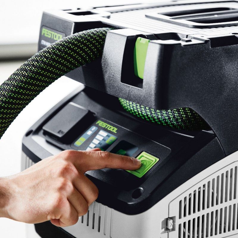 The Festool 574825 mobile dust extractor is light but powerful. Whether it's used on the construction site or in the workshop, thanks to its huge container capacity of 15 litres, it provides maximum volume with compact dimensions. It is the first compact extractor for hazardous dust from dust class M with automatic suction hose detection to maintain a clean, healthy working environment. The built in Bluetooth technology saves you a trip to the dust extractor by starting it up automatically to save precious time on the jobsite.