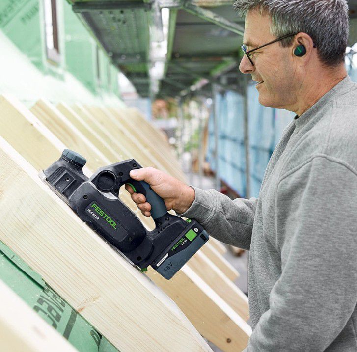 The Festool HLC 82 EB Basic Cordless Planer delivers powerful, clean, and precise planing results on-site or in the workshop without cable restrictions. Featuring a brushless EC-TEC motor for consistent performance and extended runtime, the HLC 82 offers a planing width of 82mm, adjustable cutting depth up to 2.5mm, and a maximum rebate depth of 25mm for versatile adjustment work, chamfering, and precise finishing of wood surfaces. With its spiral blade for superior surface quality, dual extraction channels, and ergonomic design, this planer makes quick work of tasks while ensuring a clean and quiet operation.