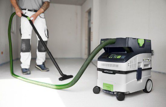 The CTL MIDI AC compact dust extractor boasts technically advanced AUTOCLEAN main filter cleaning. This keeps the filter clear and ensures consistently high suction power, longer working intervals and a longer filter service life with lower maintenance effort. Its low weight and compact dimensions make it ideal for service and installation work. With lots of innovative details, such as the smooth suction hose and touch operation. Integrated Bluetooth technology starts the mobile dust extractor automatically via the Bluetooth battery pack or the optional remote control. The internal hose holder, the Systainer T-LOC coupling and the practical cord holder ensure tidiness and speed.