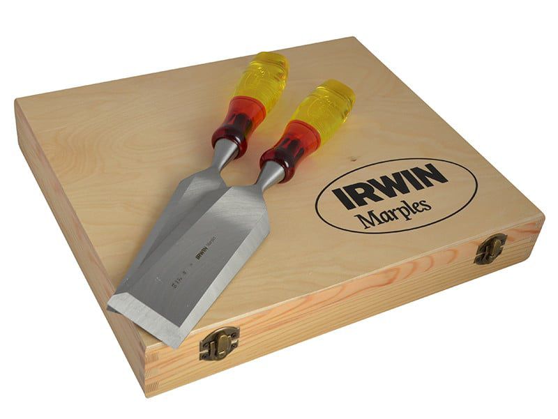 Marples M373 has been the market leading chisel for for the past 20 years in the UK.This set covers all the popular sizes from 6mm - 32mm PLUS 2 additional chisels, 38mm and 51mm. The chisel blades dual market metric and imperial and are designed to be re-ground and sharpened using any honing stone which helps extend the life of the chisel. Check our bundle deals to add a sharpening kit which is simple to use and will ensure more accurate work. Marples 8 piece splitproof chisel set in presentation box. The chisels have a carbon-rich steel blade which is a solid, one-piece forging, hardened & tempered up to the last inch for a long working life. The striking cap for added durability and withstanding hammer blows whilst the sturdy neck and bolster add strength and shock absorption.