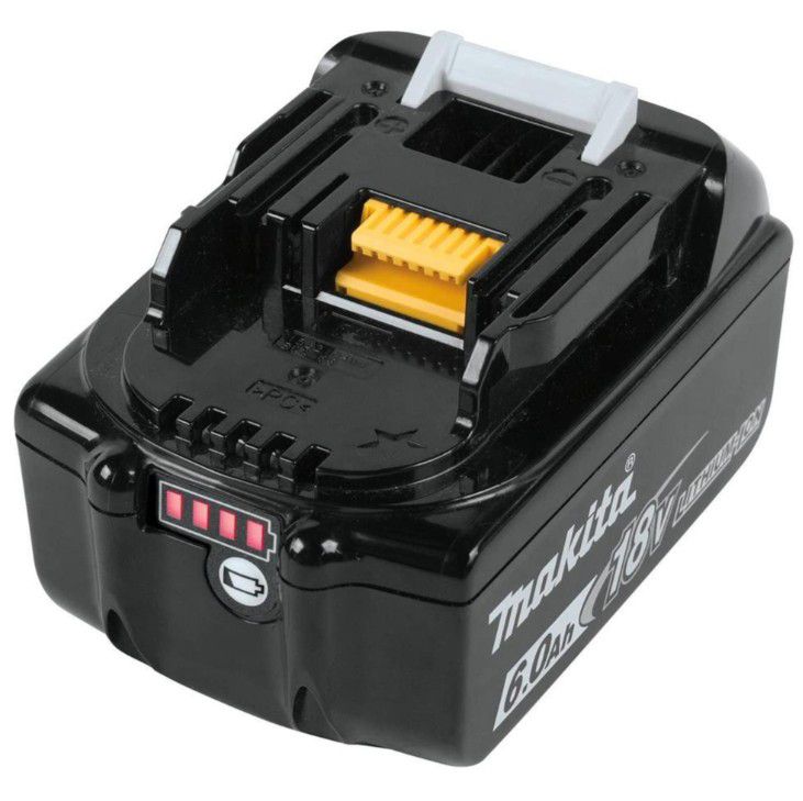The Makita BL1860 6.0Ah battery is engineered to provide twice the run time of the Makita 3.0Ah LXT battery while maintaining the same weight and dimensions as the lower-capacity 3.0Ah, 4.0Ah, and 5.0Ah LXT batteries. It can reach a full charge in just 55 minutes when used with DC18RC/DC18RD fast chargers, making it the fastest charging battery in its category. The battery also includes an LED capacity indicator so you can easily see how much charge is remaining. When used with efficient brushless motor tools or in tandem on select Makita ‘X2’ - Twin 18v tools, this 6.0Ah battery sets new standards in run time. Makita 18V X2 LXT (36V) cordless tools are powered by two 18V batteries and are designed to deliver corded power and run time for high-demand tools like saws, blowers, and trimmers without leaving the 18V battery platform or requiring heavier, high-voltage batteries. The Makita 6Ah battery is compatible with Makita 18v tools that feature the Star Protection logo.