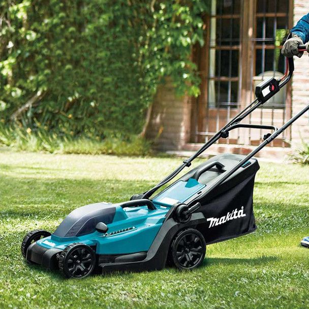 The Makita DLM330 18V LXT Lawnmower is a 330mm mower that is ideal for professional and home use thanks to its ability to turn on a small radius. Ideal for small to medium sized lawn areas up to 450 m², the DLM330 offers three functions, as well as cutting, it will collect and mulch grass cuttings. Mulching returns finer grass cuttings to the garden for the nutrients to absorbed by the soil resulting in stronger, vibrant grass areas. The mower also has a soft start, electric brake as well as a battery capacity warning indicator for your convenience. The low noise level produced by the lawn mower makes it an ideal machine to use in noise sensitive locations such as residential areas. The handle can be adjusted over 3 stages to suit your height and can be folded down for easier storage and transport when not in use. The 30litre collection box is easy to remove for emptying cuttings. The mower has a 330mm cutting diameter with a hight options of 20-75mm. The mower, thanks to the powerful 450W motor, delivers up to 4300rpm no load speed. The blade and cutting mechanism are protected by a heavy duty plastic cutting deck. The battery protection circuit protects against overloading, over-discharging and over-heating.