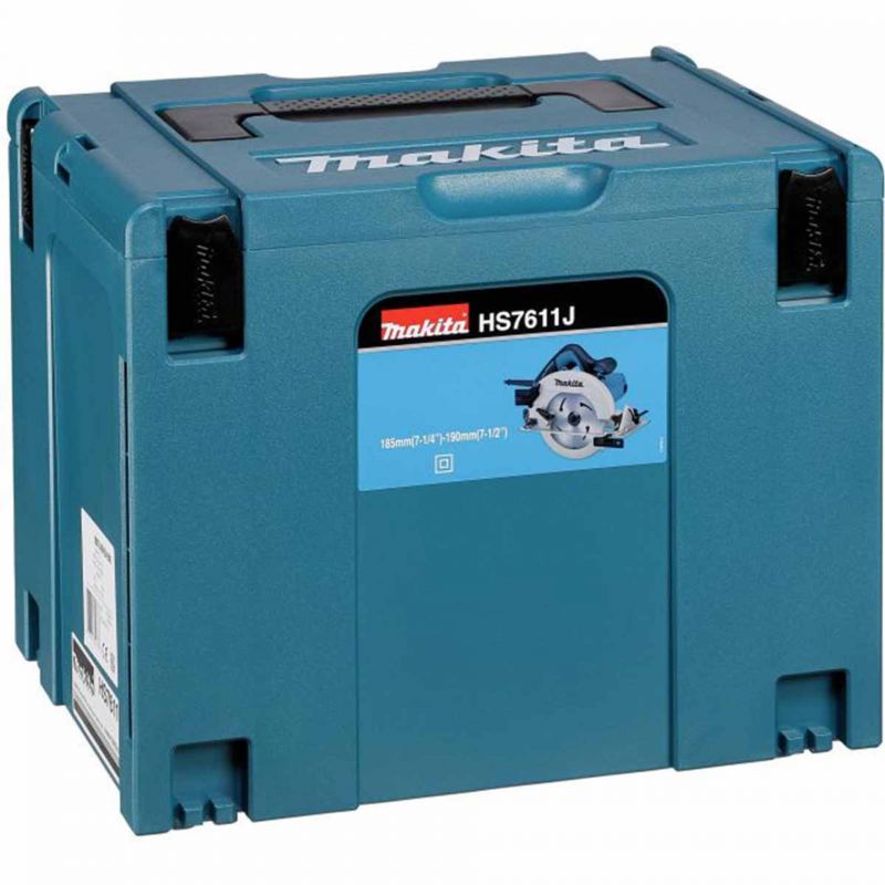 Presenting Makita HS7611J/1, highly efficient and robust circular saw tailored for professional use, featuring a powerful 1,600 W motor and a rapid speed of 5,500 min-1. Designed to handle high-capacity tasks with ease, it accommodates a 190 mm diameter blade, achieving a maximum cutting depth of 65 mm. Its compact design enhances control and safety, ensuring precision during operation. This circular saw offers increased motor-burnout resistance, delivering exceptional power for demanding applications. Furthermore, its compatibility with a guide rail allows for more precise cuts, while the ergonomic rubberised front grip and handle ensure added comfort during prolonged use. Crafted with a rigid aluminium base, this saw provides smooth cutting thanks to its lightweight construction, toughness, and excellent bend resistance. Additionally, the aluminium die-cast safety cover ensures durability and longevity, contributing to a long tool life. With its well-balanced and lightweight design, this circular saw offers superior handling and performance, making it an indispensable tool for professional craftsmen and tradespeople alike.