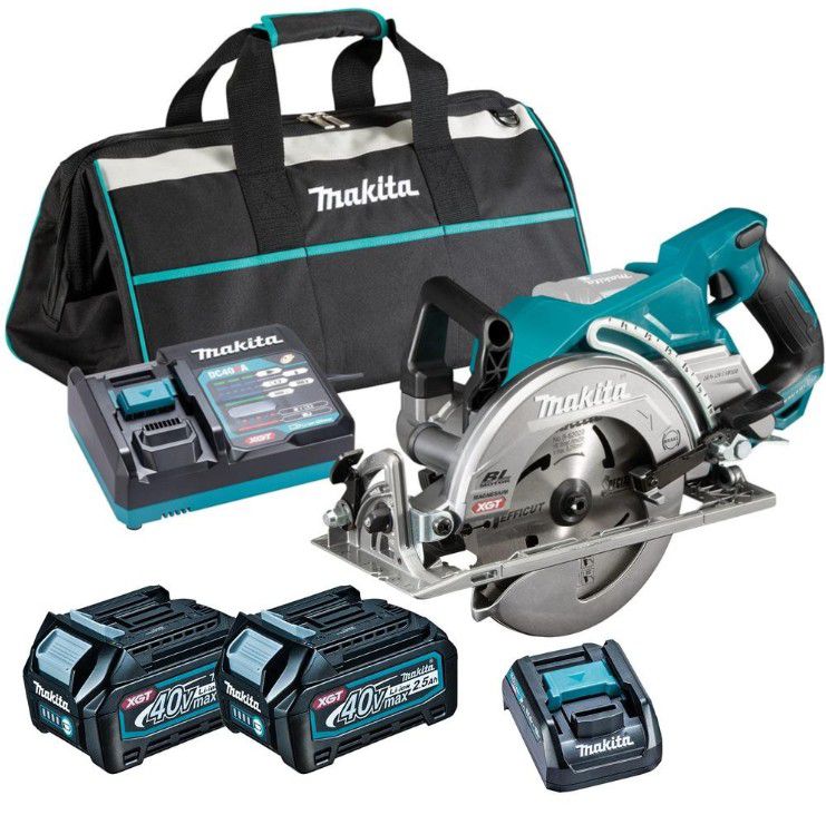 Makita RS001GD202 40v Max XGT 185mm Rear Handle Circular Saw With 2 x 2.5Ah Batteries