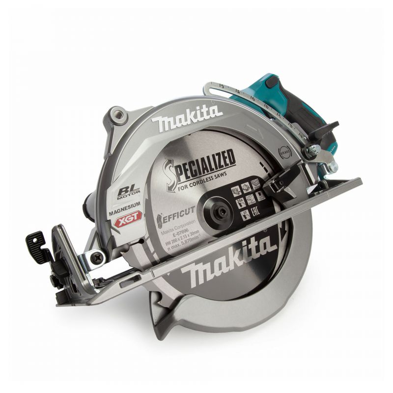 The Makita RS002G is part of their high powered 40v Max XGT range. Complete with brushless motor, electric and soft start, it also features Makita's Auto-Start Wireless Technology (AWS), allowing you to connect the saw to compatible dust extractors via Bluetooth.