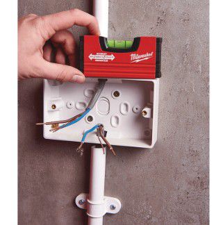 The Milwaukee Hand Tools Minibox Level has a lightweight aluminium box profile that fits easily into your tool belt or pocket. Solid, shockproof and UV resistant acrylic vials. Fitted with shockproof end caps.
