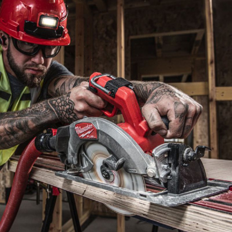 The M18 FCS66GR3 is a heavy duty circular saw from Milwaukee that is designed for professional use by carpenters, joiners and the likes. Taking blades up to 190mm in diameter it can cut to a depth of 68mm and has the ability to bevel up to 50 degrees for performing a wide range of cuts. With Forge technology this circular saw maintains it's up to 6000 RPM's throughout use to deliver a fast, clean cut and is optimised for using with the included Forge battery to deliver superior performance levels when compared to standard M18 and High Output batteries. The durable magnesium shoe is compatible with any Milwaukee guide rail allowing you perform precise, straight cuts. With an integrated LED light and dust blower, Milwaukee has ensured you have a clear view of the cutting line when using this circular saw so you can confidently get the best possible cut each time.