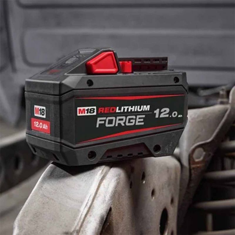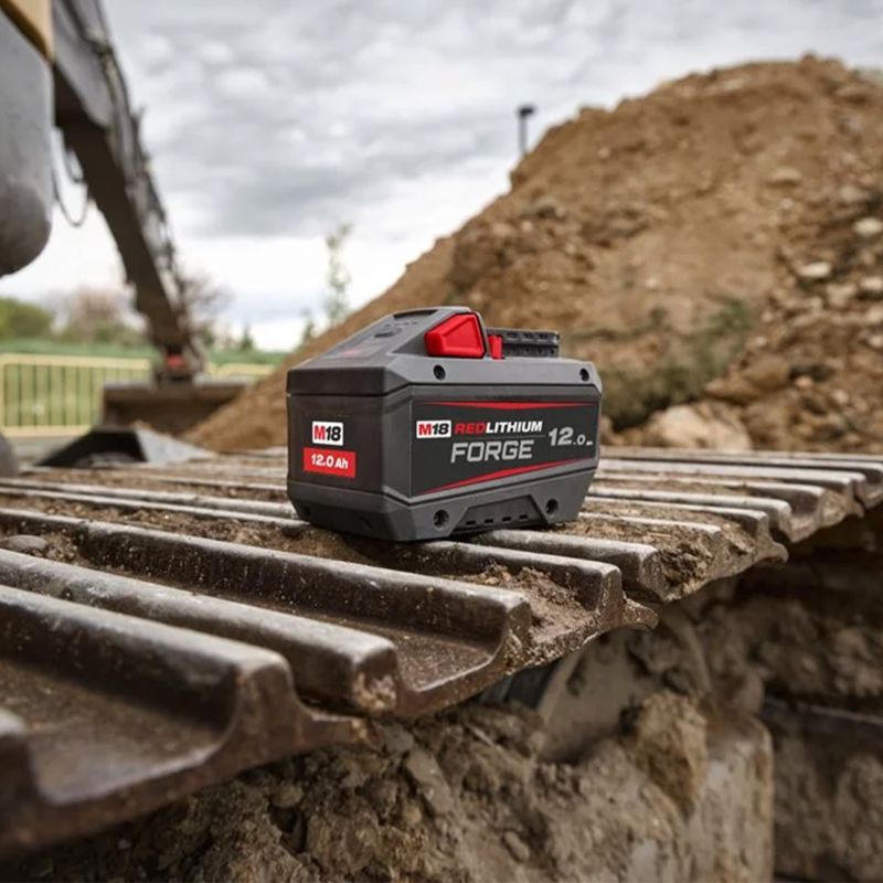The Milwaukee M18FB12 18V 12.0Ah FORGE RedLithium-Ion Battery delivers up to 50% more power than the previous HIGH OUTPUT™ 12.0Ah model. It charges to 80% in just 35 minutes with the M18™ dual bay super charger, thanks to the COOL-CYCLE™ active cooling system. Designed for durability, it resists oils, solvents, and harsh conditions while offering an extended run time for high-demand tasks. REDLINK™ intelligence ensures optimal performance and protection through smart communication between tool, battery, and charger. Its enhanced fuel gauge remains readable in bright sunlight. Fully compatible with all M18™ tools, it’s built for serious jobsite power.