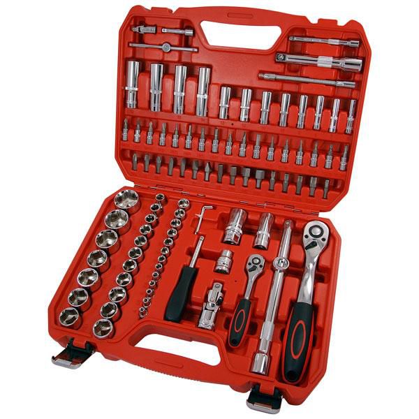 94pc 1/4 and 1/2 inch Drive Socket Set 1/2 Dr - 10 - 32mm 1/2 Dr Deep - 14. 15. 17. 19mm Spark Plug Sockets 16 and 21mm Extension Bars - 125. 250mm 1/4 Dr - 4 -14mm 1/4 Dr Deep - 6 - 13mm Extension Bars - 50. 100mm Sliding T-Bar Ph - 1. 2. 3. 4 Flat - 4. 5.5. 7. 8. 10. 12mm Square - 3. 4. 5. 6. 8. 10. 12. 14 Star - T8 - T55 Flexible Extension