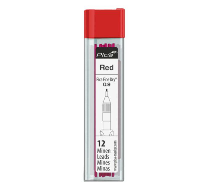 This Pica 7031 refill for Pica Marker Pencil 7070 Fine Dry consists of 12 sticks with a diameter of 0.9 mm in the color red, suitable for most marking applications. The storage box has also been thought out. The cap can be twisted open and is permanently attached to the housing. This also means that the cap cannot get lost.