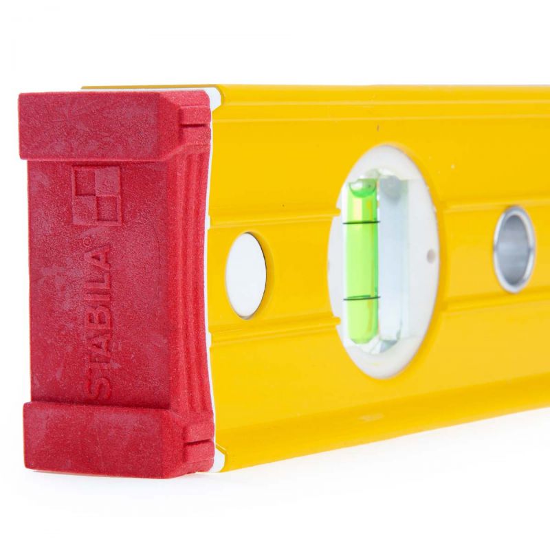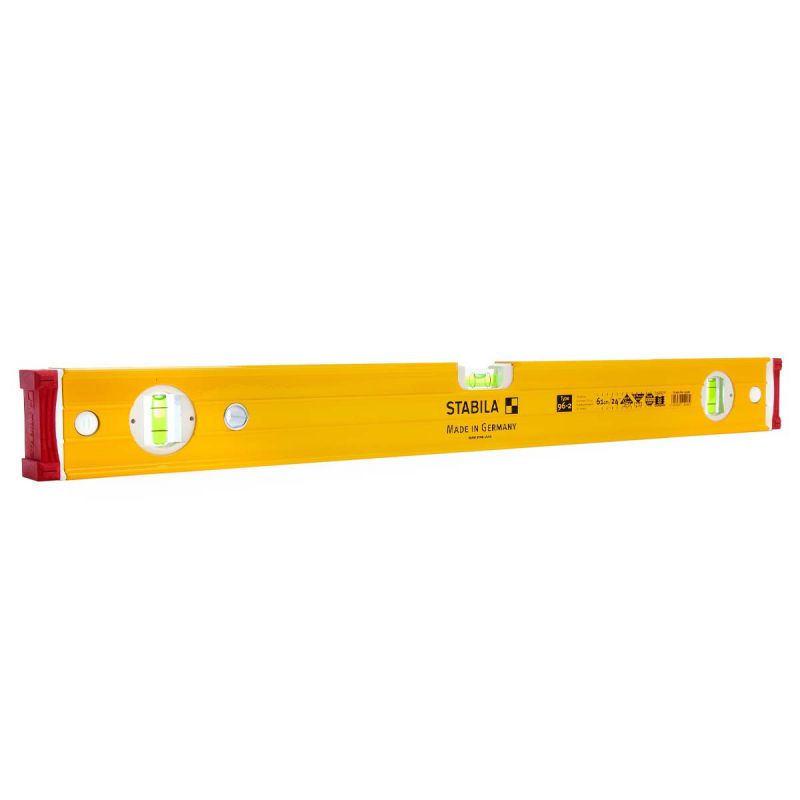 Stabila 96-2 Extra strong double plumb ribbed box section levels are made from an extra strong light metal rectangular profile with gripping ridges and removable end-caps made from two materials.