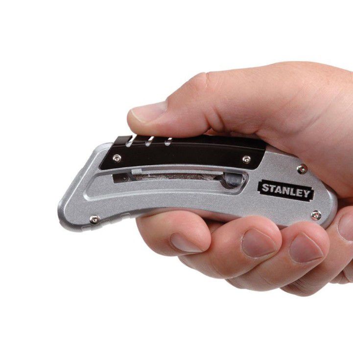 The Stanley 10-810 quickslide ultility knife has an all metal construction and incorporates a metal belt clip. It is easy-to-use with one hand and no tools are required to change the blade. The push down and slide mechanism extends the blade quickly and easily, but also ensures that the blade is not accidentally extendeThe compact and slim design of the QuickSlide sliding pocket utility knife promises performance, reliability and great usability. This latest Stanley utility knife features a convenient sliding blade holder allowing a quick and easy single-handed action. It accepts all standard utility and hook blades into its quick-change slider. The QuickSlide knife allows quick and easy blade changing without the use of tools. The knife has an all metal die-cast zinc construction and a one-piece belt clip for convenient carrying. Only 110mm long when closed.