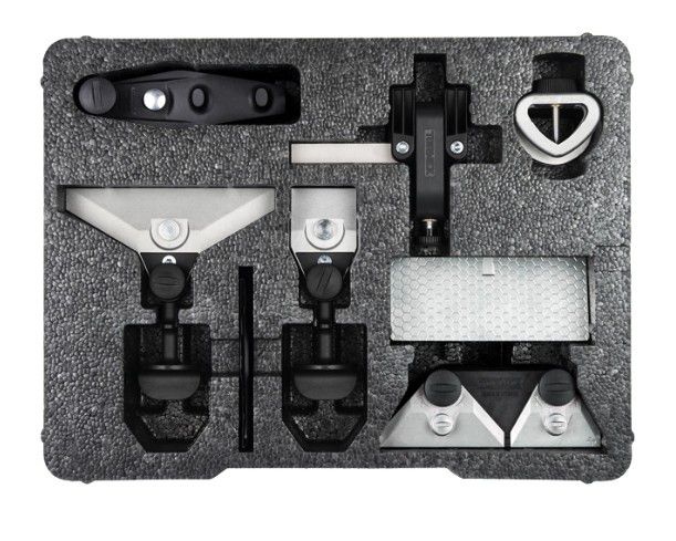 This kit contains all the jigs you need to sharpen all types of knives, scissors, lawnmower blades, axes as well as short chisels and carving tools. The perfect package to sharpen all your edge tools at home or in the workshop. And to store your jigs neatly and tidily of course!