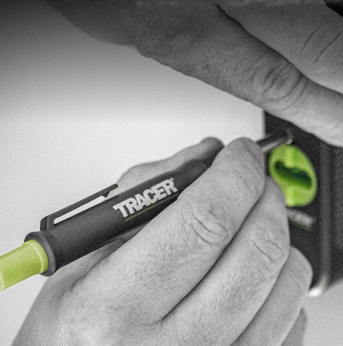 Marking hole compatible with the Tracer 2.8 mm deep-hole pencil for clean, accurate layout marks.